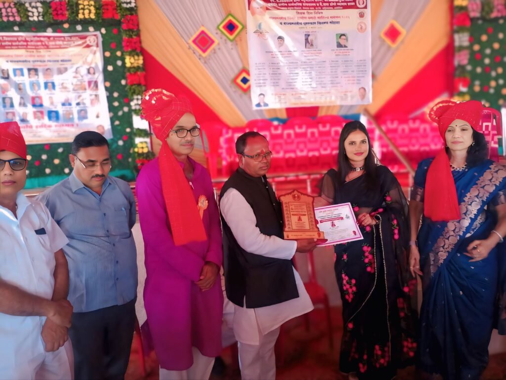 अहिल्यानगर -5 सप्टेंबर शिक्षक दिनानिमित्त,स्व.पै.किसनराव डोंगरे बहुउद्देशीय संस्था,श्री नवनाथ युवा मंडळ, धर्मवीर ग्रामीण सार्वजनिक वाचनालय व पै.नाना डोंगरे व्यायाम शाळा निमगांव वाघा, ता.जि. अहिल्यानगर यांच्या संयुक्त विद्यमाने,आयोजित राज्यस्तरीय पुरस्कार सोहळा 2025 दि. 5 सप्टेंबर रोजी शिक्षक दिनानिमित्त निमगाव वाघा येथील परिवार मंगल कार्यालयात संपन्न झाला.या कार्यक्रमास सोजाई आदिवासी महिला विकास फॉउंडेशन सचिव अँड.जयश्री बी सोनवणे यांना देखील राज्यस्तरीय “झाशीची राणी लक्ष्मीबाई ” पुरस्कार उपस्थित मान्यवरांच्या हस्ते प्रदान करण्यात आला.अँड.जयश्री बी सोनवणे या दैनिक माझा मराठवाडा वृत्तपत्राच्या निवासी संपादिका, रिपब्लिकन आवाज न्यूजच्या उपसंपादिका, ब्लु स्टॉर्म टीव्ही न्यूज च्या वृत्तनिवेदिका त्यासोबतच त्या एक सामाजिक कार्यकर्त्या एक कवयित्री एक व्याख्यात्या अशा सर्वगुण संपन्न व्यक्तिमत्व असून अन्याय अत्याचाराला वाचा फोडण्याचं काम त्या करत असतात. या सर्व कार्याची दखल घेत त्यांना हा पुरस्कार प्रदान करण्यात आला. यावेळी कार्यक्रमाच्या दुसऱ्या सत्रात राज्यस्तरीय तिसरे ग्रामीण मराठी साहित्य संमेलनाचे नियोजन करण्यात आले होते.या साहित्य संमेलनात अनेक साहित्यिक, कवी /कवयित्रीनीं आपला सहभाग नोंदवला होता. त्यातचं कवयित्री अँड.जयश्री सोनवणे यांनी देखील आपली *दारुडा नवरा* ही कविता सादर करुन लग्न झाल्यानंतर ज्या वेळी मुलीचा नवरा व्यसनाधीन असतो त्या वेळी त्या मुलीची आणि तिच्या पोराबाळांची संसाराची जी अवस्था होते ती आपल्या कवितेतून मांडली. आणि प्रेक्षकांच्या डोळ्यासमोर हुभेहूब ते चित्र उभे राहिले. सर्व भावनिक होऊन निशब्द: झाले. त्या कवितेला सर्वांनी आपली पसंती दिली आणि त्याबद्दल त्यांचा सन्मानही करण्यात आला.या कार्यक्रमात अँड.राजेश आसाराम कातोरे (अध्यक्ष, अ.नगर बार असोसिएशन),पल्लवी उंबरहंडे/देशमुख सहाय्यक पोलिस निरीक्षक,श्री.राजेंद्र सुंदरदास फंड साहित्यिक व सामाजिक क्षेत्र,गिताराम नरवडे (ज्येष्ठ कवी),आनंदा साळवे (जेष्ठ कवी ),कवी आत्माराम शेवाळे,पत्रकार बाळासाहेब कोठुळे, साहित्यिक कवी रुपचंद शिदोरे,कार्यक्रमाचे आयोजक पै.नानाभाऊ किसन डोंगरे (अध्यक्ष)पै.किसनराव डोंगरे बहुउद्देशीय संस्था धर्मवीर ग्रामीण सार्वजनिक वाचनालय. आदी मान्यवर यावेळी मोठया संख्येने उपस्थित होते.