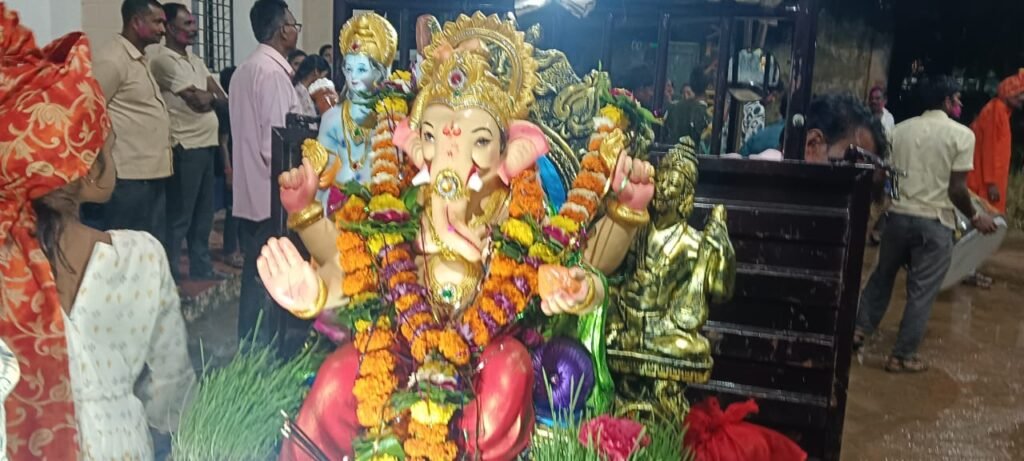 भंडारा- पवनी तालुक्यातील अड्याळ पोलीस स्टेशन येथे दिनांक 27 ऑगस्टला गणरायाची स्थापना करण्यात आलेली होती व आज दिनांक 1 सप्टेंबर 2025 ला सायंकाळी 8 वाजता ढोल ताशांच्या गजरात व फटाक्यांच्या आतिषबाजीत 6 व्या दिवशी गणराया बाप्पाला अखेरचा निरोप देण्यात आला. यावेळी अड्याळ पोलीस स्टेशनचे सर्व कर्मचारी, अड्याळ पोलीस स्टेशन अंतर्गत येत असलेले पोलीस पाटील, पत्रकार व नागरिक व महिला बहुसंख्येने गणेश विसर्जनाच्या वेळेस उपस्थित होते. सर्वांना अड्याळ पोलीस स्टेशन तर्फे जेवणाची सुद्धा व्यवस्था करण्यात आली होती. गणेश विसर्जन रॅलीत सर्व कर्मचारी व सहाय्यक पोलीस निरीक्षक धनंजय पाटील यांनी सुद्धा गणेश विसर्जनाचा आस्वाद घेतला.