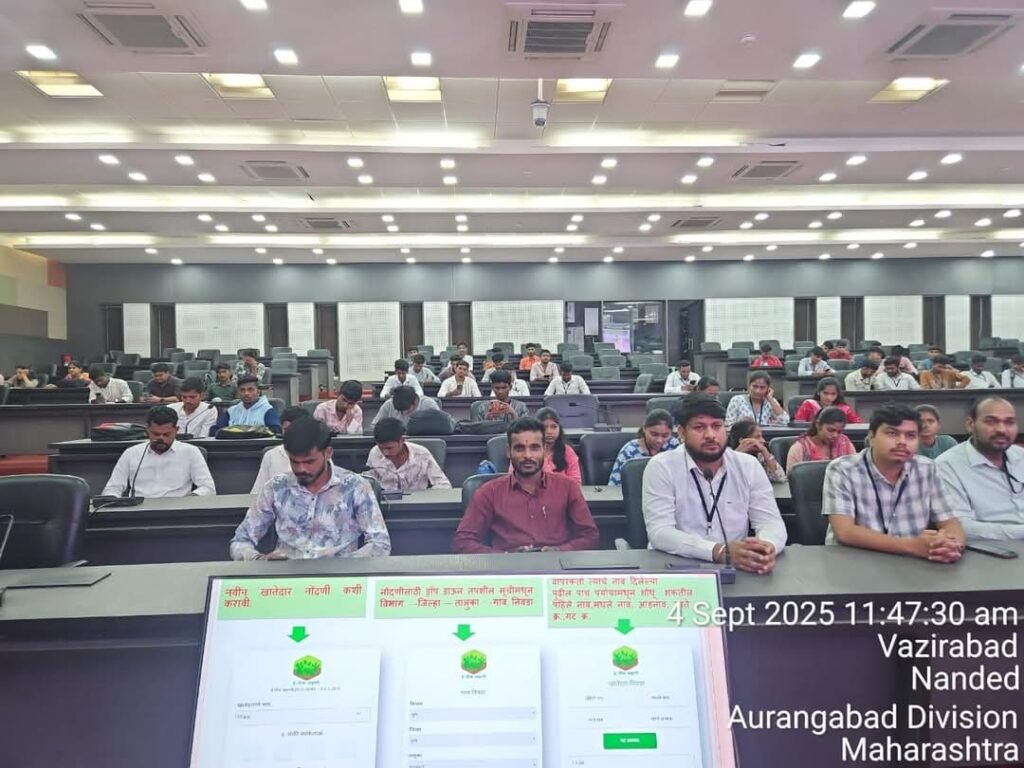 नांदेड :- ई-पीक पहाणी करण्यासाठी जिल्हाधिकारी राहुल कर्डिले व उप विभागीय अधिकारी नांदेड डॉ. सचिन खल्लाळ यांच्या मार्गदर्शना नुसारनांदेड तालुक्यात ग्रामीण भागात ई-पीक पहाणी करण्यासाठी जवाहरलाल नेहरू समाजकार्य महाविद्यालय व संशोधन केंद्र सिडको नांदेड येथील एमएसडब्लू व बीएसडब्लूच्या विद्यार्थ्यांचे सहकार्य घेण्यात येणार आहे. याबाबत या विद्यार्थ्यी यांना नियोजन भवन नांदेड येथे नविन ई-पीक पहाणी (डीसीएस) अँपचे पीपीटीव्दारे प्रशिक्षण ४ सप्टेंबर रोजी देण्यात आले. तहसिलदार नांदेड संजय वारकड यांनी विद्यार्थ्यांना मार्गदर्शन करून 15 सप्टेंबर 2025 पर्यंत शेतकरी लॉगीन मधून ई पीक पाहणी पुर्ण करून घेण्याबाबत सुचना केल्या.ई पीक पाहणीच्या अनुषंगाने तहसील कार्यालयाच्यावतीने सर्व बीएसडब्लू व एमएसडब्लूच्या विद्यार्थ्यांचे प्रशिक्षण देण्यात आले . एका गावामध्ये एक किंवा दोन-तीन असे विद्यार्थ्यांची नेमणूक केली असून, संबंधित ग्राम महसूल अधिकारी (तलाठी) यांनी त्या विद्यार्थ्यांना समजावून सांगून त्यांचे सहकार्य घेऊन ई पीक पाहणी डीसीएसव्दारे आपल्या गावातील 100 टक्के करावयाचे आहे . अशा सुचना ग्राम महसूल अधिकारी व मंडळ अधिकारी यांनी एक नाविन्यपूर्ण उपक्रम राबवून मुदतीत यशस्वी करावे असे आवाहन तहसिलदार नांदेड यांनी केले.विद्यार्थ्यांना या अँप व्दारे काम करतांना गाव पातळीवर ग्राम महसूल अधिकारी (तलाठी),ग्राम पंचायत अधिकारी (ग्रामसेवक) व सहाय्यक कृषी अधिकारी (कृषीसहाय्यक) ,सरपंच, ग्रामपंचायत सदस्य,पोलिस पाटील , महसूल सेवक (कोतवाल),ग्राम रोजगार सेवक,आपले सरकार सेतू संचालक व ग्राम पंचायत ऑपरेटर,सीएससी सेंटर चालक यांनी एमएसडब्लू महाविद्यालयातील नियुक्त सहाय्यक विद्यार्थ्यांना मदत करावी व मार्गदर्शन करावे अशा सुचना दिल्या. जे विद्यार्थी उत्कृष्ट कार्य करतील त्यांची प्रशासना कडून नोंद घेण्यात येईल असे सांगितले. जवाहरलाल नेहरू समाजकार्य महाविद्यालयाचे प्राचार्य मुजावर व प्राध्यापक विदयाधर रेड्डी व एस एस शिंदे यांनी महाविद्यालया तर्फे विद्यार्थ्यांकडून मुदतीत अँप व्दारे काम करून सहकार्य करू असे सांगितले. या प्रसंगी विद्यार्थ्यांनी ई पीक पहाणी डीसीएस अँप डाऊनलोड केले.या प्रशिक्षणास तहसिलदार नांदेड संजय वारकड, परिविक्षाधिन तहसिलदार अभयराज ननजुंडे,नायब तहसिलदार महसूल सुनिल माचेवाड,मंडळ अधिकारी तरोडा शिवानंद स्वामी,अ का सुरेखा सुरुंगवाड ,ग्राम महसूल अधिकारी एम के पाटिल,मनोजकुमार जाधव,दिलीप पवार व माधव शिराळे अदि उपस्थित होते.नांदेड तालुक्यातील सरपंच,उपसरपंच,ग्रामपंचायत सदस्य,सोसायटीचे अध्यक्ष पदाधिकारी व प्रतिष्ठित व्यक्ती यांनी एमएसडब्लूचे विद्